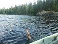 Kapeenkoski Lock of Keitele–Päijänne canal.- A fisherman catching a small pike on Lake Kiimasjärvi.