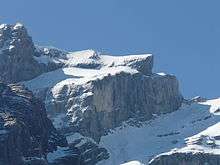 ![]() De gauche (est) à droite (ouest) : pic du Marboré, pic de la cascade oriental, pic de la cascade central ou pic Brulle, pic de la cascade occidental, épaule du Marboré, tour du Marboré, casque du Marboré, et refuge des Sarradets. Au centre, cascade de Gavarnie. Voir encadrements des photographies n°1 et n°2 sur Commons. | |