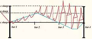 Contour line of sforzati (bars 16 - 45) after Leichtentritt