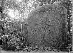 Östergötland Runic Inscription 77 or Ög 77 is the Rundata catalog designation for a Viking Age memorial runestone located at Hovgården (Hov Synod), which is seven kilometers north of Väderstad, Östergötland County, Sweden, and in the historic province of Östergötland.