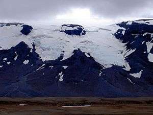 Þórisjökull or Thórisjökull (Icelandic for "Thóris's glacier") is a small glacier and volcano in western-central Iceland, to the southwest of Langjökull glacier. It has an elevation of 1,350 metres (4,430 ft). Kaldidalur lies in the foreground.