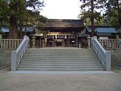 Ōyamazumi Shrine (大山祇神社 Ōyamazumi Jinja) is located on the island of Ōmishima in the Seto Inland Sea. The shrine is dedicated to the gods who protect sailors and soldiers. Because of this, many daimyo and other military leaders have made offerings at the shrine in hopes of military success, or in thanks for victory in battle.[1] The offerings of swords, armor, and other military equipment are now housed in the largest museum of fighting equipment used during the age of the samurai in Japan. There are items housed in the shrine which belonged to Tomoe Gozen, Minamoto no Yoritomo, founder of the Kamakura Bakufu and first shogun, and to his younger brother, Minamoto no Yoshitsune.