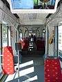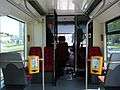The interior for the passengers is equipped with air-conditioning, Wi-Fi, automatic touch-enabled ticket validation machines, 12 Full-HD displays displaying stops, acoustic announcement system and a heating system. There are 5 doors on each side of the tram (10 total). Doors will open on demand (passenger has to push a button). Above each door, there is an infrared photosensor system which used to count passengers boarding the tram. It can be used to automatically close the doors, if no passenger has passed through for a certain amount of time.