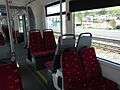 The tram is a five section fully air-conditioned high capacity electric multiple unit with four bogies and five pairs of doors on each side of the carriage. 92% of the tram is a low-floor area.[3] Two of the four bogies are fixed and the outer two can pivot to adapt to curvature of the track. One of the inner and both outer bogies have driving axles.[4] The tram has operator's controls at both ends, each driver cabin has air conditioning, fridge and equipment to switch the points manually. The tram is controlled with a hand controller.