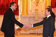 Janjetović presents his credentials to Dmitry Medvedev in February 2009.
