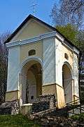 Three of the 19 brick chapels of the Vilnius Stations of the Cross (Vilniaus Kalvarijos), part of Verkiai Regional Park, are located at the extreme northwestern corner of Žirmūnai, just within the elderate's border. Once destroyed in 1963 and completely rebuilt, the three chapels, symbolizing the Mount of Olives and the Gardens of Gethsemane, are found only 20 meters away from the relatively busy Verkių Street, and about a hundred meters downhill from a group of Soviet multi-storey apartment buildings.