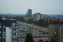 The first microdistrict, or "Žirmūnai I", which is district's middle section, was built in 196267 in accordance with a project by architect Birutė Kasperavičienė, who was avarded the USSR State Prize in 1968, together with architect Bronislovas Krūminis and engineers Ṧmuelis Liubeckis and Vaclovas Zubras;[27] it was the first time this award had been presented to the designers of a large-scale residential construction. The second microdistrict, "Žirmūnai II", which is the southernmost of the three, was built in 196468, its architect being Nijolė Chlomauskienė. And the third, the northernmost microdistrict, "Žirmūnai III" designed by architect Laima Burneikienė was built in 196469 in the site of the former village of Paneriškės.[28] The city district was then named after the formerly Lithuanian[29] village of Žirmūnai (Russian: Zhirmuny), now situated 16 kilometres from the LithuaniaBelarus border in the Voranauski District, Hrodna Province of Belarus. This village is where Karol Podczaszyński, an architect and designer of Tuskulėnai Manor, was born. Hence the future district's major street Žirmūnų was named after the village as it is seen in the map of 1942[26] and gave its name to the entire district.