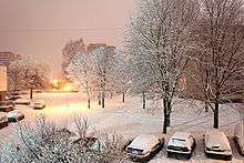 According to the 2001 census, Žirmūnai was the most populous elderate in Vilnius (47,410 residents, comprising 8.7% of Vilnius' total population[9]) and the third most populous in Lithuania after Šilainiai and Dainava, Kaunas. The population density was 8,317.5/km². According to the census, there were 21,363 private households in the Žirmūnai elderate,[8] making for an average household size of about 2.2 persons. The population of Žirmūnai has been rapidly increasing, largely due to construction of residential buildings in the Šiaurės miestelis section of the elderate. A former elder of Žirmūnai estimated its 2002 population to be about 60,000 residents an increase of about 13,000 over the 2001 census figure. This rapid growth has placed a strain on city services.[10]