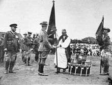 Throughout the 1930s, the economic impact of the Great Depression resulted in a period of austerity for Australia's military. The scarcity of employment meant that there were only limited numbers of volunteers as men who had jobs could not afford to risk them by taking time off for military training. In addition, equipment was scarce or obsolete and there were only limited training opportunities available for those that could parade. The reduced manning resulted in several battalions being amalgamated or disbanded.[14] Of the 14th Brigade's units, this affected the 3rd Battalion, which was initially amalgamated with the 4th Battalion in 1930 and then later the 53rd, although these were later delinked in the late 1930s as the military was expanded due to concerns about war in Europe; the 53rd and 55th Battalions were also linked for a period during the 1930s.[15] From 1933, Colonel Arthur Allan commanded the brigade, remaining in command until after the outbreak of World War II.[16]