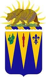The 159th was reactivated in the post-war years and underwent several force reorganizations, including assignment as an element of the 49th Infantry Division and 49th Infantry Brigade.[1] From January 1974 until January 1976 its 1st Battalion was part of the 40th Infantry Division; its 2nd Battalion was part of the 40th Infantry Division from January 1974 until October 2000.[9] It is not currently listed as an active unit of the California Army National Guard.[10][11]