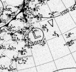 A tropical depression formed about 140 mi (230 km) east-southeast of Ocean City, Maryland, early on September 2. The depression drifted southward and reached tropical storm intensity later that day.[5] Based on observations from ships on September 3, the cyclone peaked with maximum sustained winds of 50 mph (85 km/h) and a minimum barometric pressure of 1,007 mbar (29.7 inHg).[4] The storm then began moving southwestward at a faster pace. Late on September 5, the cyclone weakened to a tropical depression and curved west-southwestward. Shortly after 06:00 UTC on September 6, the system made landfall near Midway, Georgia, with winds of 35 mph (55 km/h). About 12 hours later, the depression dissipated over southwest Georgia.[5] Impact was minimal, with the strongest wind speed reported being 37 mph (60 km/h) in Charleston, South Carolina.[4]