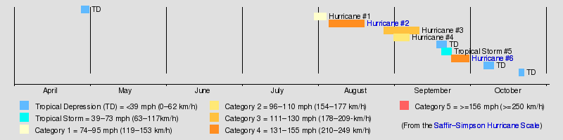 The 1915 season was not very active in terms of the number of storms but it was fairly eventful, with two powerful hurricanes hitting the Gulf Coast of the United States.