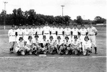 Front, L-R: Mary Lou Graham (bat girl), Louise Clapp (P), Betty Wagoner (RF), Mary Froning (OF), Gertrude Dunn (SS), Jane Stoll (CF), Charlene Pryer (2B), Rose Montalbano (IF), Georgette Vincent (P). Back, L-R: Jean Faut (P), Josephine Lenard (LF), Joyce Hill (1B), Barbara Hoffman (3B), Glenna Sue Kidd (P), Dorothy Mueller (P/1B), Janet Rumsey (P), Elizabeth Mahon (OF), Mary Baumgartner (C), Shirley Stovroff (C), Louise Arnold (P), Karl Winsch (manager). Absent from photo: Ruth Davis (bat girl), Audrey Seitzinger (3B/SS), Margaret Wenzell (IF/OF), Janet Wiley (1B).