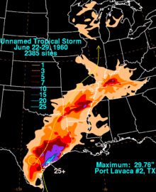 - 1 2 3 David M. Roth (March 12, 2007). Unnamed Tropical Storm – June 22–29, 1960. Weather Prediction Center (Report). College Park, Maryland: National Oceanic and Atmospheric Administration. Retrieved May 8, 2013.