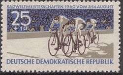 The 1960 UCI Track Cycling World Championships were the World Championship for track cycling. They took place in Leipzig and Chemnitz, East Germany from 3 to 14 August 1960.[1] Eight events were contested, 6 for men (3 for professionals, 3 for amateurs) and 2 for women.