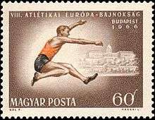 Men's long jump at the 1966 European Athletics Championships on a Hungarian stamp