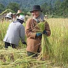 The producers of these commodities, however, were not among the principal beneficiaries. Farmers depended on rice sales to survive. To better protect themselves, they organised themselves and formed a national coalition of rural farmers against exploitative market conditions. Though the farmers vainly attempted to defend their source of income, their efforts were systematically frustrated by governmental authorities in collusion with landlords and others who had vested interests in ensuring that rice prices remained high.[4] In the 1970s a Thai farmer's average per capita income was only US$49. In contrast, the average national per capita income was US$125, and that of urban residents stood at US$428.[7]