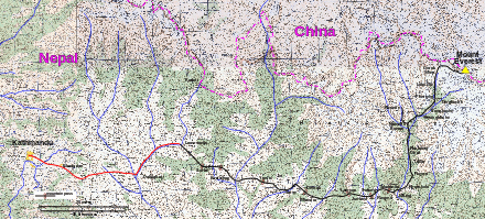 - ↑ This road is now the Araniko Highway and it goes on further north to cross into China at the Sino-Nepal Friendship Bridge at Kodari.