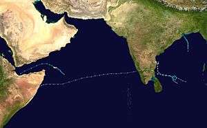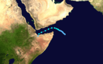 On May 23 a tropical depression developed in the northwest Arabian Sea. It drifted west-northwestward, slowly organizing into a tropical storm on the 26th. It tracked westward through the Gulf of Aden, reaching a peak of 50 mph winds before hitting northern Somalia on the 28th. It quickly dissipated, after becoming the only North Indian tropical cyclone in recorded history to transit the Gulf of Aden.