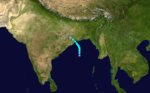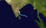 Tropical Depression Three formed in the south-central Bay of Bengal. It tracked west-northwestward, becoming a tropical storm on November 10 and a cyclone on the 11th. A break in the ridge brought it northward, where steering currents collapsed on the 13th. After reaching a peak of 95 mph winds the cyclone looped slowly to the west and hit India on the 14th and dissipating on the 15th. Due to the stalling just offshore, the cyclone brought torrential flooding, resulting in at least 430 fatalities and moderate damage.