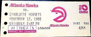 A ticket for a November 1988 game between the Hawks and the Charlotte Hornets.