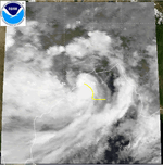 A tropical depression that developed in the Bay of Bengal on October 4 tracked westward to become a tropical storm on the 7th. It turned more to the north, and hit southeastern India as a 50 mph tropical storm on the 9th.