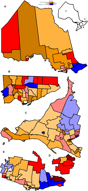 | Liberal | David Peterson | 130 | 95 | 36 | -62.1% | 1,302,134 | 32.4% | -14.9% | |