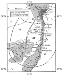 - 1 2 Fergany, E.A.; Sawda S. (2009). "Estimation of Ground Motion at Damaged Area During 1992 Cairo Earthquake Using Empirical Green's Function". Seismological Research Letters. 80 (1): 81–88. doi:10.1785/gssrl.80.1.81. Retrieved 9 June 2010.