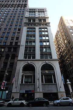 19 South LaSalle Street was constructed as the Central YMCA (Association Building) in 1893,[1][2] and completed shortly before the Panic of 1893.[1] The structure, designed by William LeBaron Jenney and William Bryce Mundie as Jenney & Mundie, was eventually renamed for its address, 19 South LaSalle Street.[3] Modern-day 19 South LaSalle Street is owned by Cloverfield, Inc. and operated by Colonnade Management, Inc. as a mixed-use retail and office building.[4] Law offices and companies such as Vivid Ascent, an integrated marketing firm, and Sprint, which has a retail location in the building, operate out of 19 South LaSalle Street.[5][6][7]