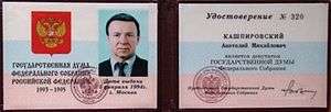 The State Duma of the Federal Assembly of the Russian Federation the first convocation (Russian: Государственная Дума Федерального Собрания Российской Федерации I созыва) is the former convocation of the legislative branch of the State Duma, Lower House of the Russian Parliament, worked from December 12, 1993 – December 16, 1995.[1] The first few months, the State Duma was located in the Comecon building on New Arbat Avenue,[2] then moved to the State Duma building on Okhotny Ryad.