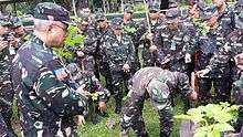 BGEN Johnny Macanas AFP - AFP Deputy J-9 instructs members of the Quezon City TAS Unit in the proper planting and care of a Bukidnon cherry blossom sapling.