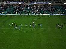 Although Hibs then lost home matches to Celtic and Inverness immediately after their European ties, they then went on another run of victories, this time five in succession. The highlight of this run was the 2–0 Edinburgh derby win against Hearts, which ended their unbeaten start to the season.[5] Despite a home defeat by Falkirk where Hibs had led 2–0, a convincing 2–1 win against Rangers led to media speculation that Hibs could challenge for the league title, which Tony Mowbray played down.[6]