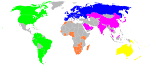 The eight quarter-finalists from the 2003 World Cup all received automatic entry, with the other 12 nations coming from qualifying series around the world. Ten of the 20 positions available in the tournament were filled by regional qualifiers, with an additional two being filled by repechage qualification. The qualifying tournament was divided into five regional groups; Africa, Americas, Asia, Europe and Oceania.[5] Qualifying matches began in 2004 and were completed in early 2007. Including the automatic qualifiers, over 90 nations were in qualifying contention for the final tournament.