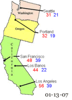 The invasion of cold air ranged from January 13 to January 18, 2007 and affected several areas of California, Oregon, and Washington in different ways.