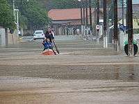 The 2008 Santa Catarina floods were floods in the Santa Catarina, Brazil in November 2008. They occurred after a period of heavy rainfall, most significantly from 20-23 of November. The state had suffered constant rainfalls for over two months on the coast, which turned the soil wet enough to cause a landslide during the storm that hit the state in late November.[2] It affected around 60 towns and over 1.5 million people in the state of Santa Catarina in Brazil.[3] At least 128 people are confirmed to have been killed [4] with over 78,700 being forced to evacuate their homes.[5][6][7] A further 150,000 have been left without electricity, while water rationing is being carried out in at least one town due to purification problems.[3] Santa Catarina state Governor Luiz Henrique da Silveira had earlier suggested that the final death toll was likely to be over 50,[2] a figure that has proved optimistic. Several towns in the region have become cut off due to floodwater and landslide debris and on November 23 the Mayor of Blumenau, João Paulo Kleinubing, declared a state of emergency in the city.[8] Water levels in the Vale do Itajaí have risen to eleven metres above normal.[9]