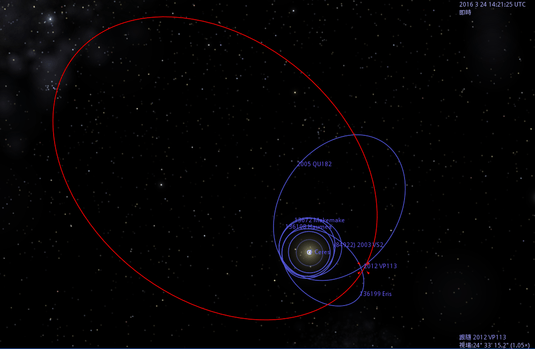 - ↑ Horizons output. "Barycentric Osculating Orbital Elements for 2012 VP113". Retrieved 2016-01-23. (Ephemeris Type:Elements and Center:@0)