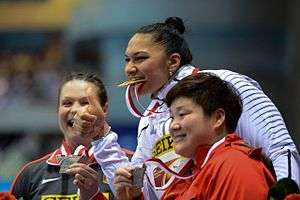 The medalists (left to right): Christina Schwanitz, Valerie Adams, Gong Lijiao