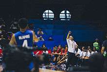 The Philippines national basketball team in 2014 led by head coach Chot Reyes first tournament was the 2014 FIBA Asia Cup where they managed to finish third.[1] The team had a series training camps in Miami in the United States, in Antibes, France where they participated in a pocket tournament, and Spain the host country of the FIBA World Cup. They returned to the FIBA World Cup after 36 years last participating in the 1978 edition.[2] The national team did not get past the group stage with only a lone win against Senegal. The win against Senegal was the Philippines first win at the FIBA World Cup since 1974.[3] However the national team did not meet expectations at the Asian Games and failed to reach the medal round.[4] Head Chot Reyes is later replaced by Tab Baldwin who assumed Reyes' former post the next year.