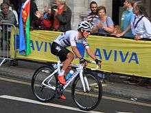 Cummings's lead over the peloton at the foot of the final climb was one minute and twenty seconds. With 5.5 km (3.4 mi) remaining, Vincenzo Nibali moved to the front in support of Astana teammate Michele Scarponi, whose failed attack led to the formation of an elite group of chasers including the general classification leaders. Chris Froome was the only rider to have the support of a teammate, Wouter Poels, who rode on the front until Froome attacked as they caught Cummings.[41] At first Tejay van Garderen could follow this move, but he was eventually unable to keep up with Froome and was caught by Simon Yates and Rui Costa.[43] Froome took the stage victory, eighteen seconds ahead of the three behind, and finished the race as the winner of the general classification.[41]