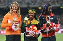 - ↑ "World Championships 2015: Fraser-Pryce retains 100m title". BBC Sport. 24 August 2015. Retrieved 25 August 2015.