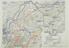 Several times while the 42nd Infantry Division was occupying the Tyrol region of Austria, its occupational boundaries were changed. When the Division first moved into the area, it was responsible for both the eastern portion of the Tyrol and portions of Landkreis Rosenheim, Bad Aibling and Miesbach immediately north of it in Germany.[19] On 19 May, the area was extended to include all of these three German areas and also the adjoining Landkreis Ebersberg. It was into this area of Ebersburg and Aibling that 200,000 surrendered German troops were being moved and the task of guarding them was assigned to the 232nd Infantry Regiment. On 24 May, however, other troops took over in these areas and the 232nd was relieved.[20] By the end of January 1947, the men of the 232nd Infantry Regiment, and of the 42nd Infantry Division, went home to the USA and the unit was deactivated.[21]