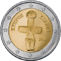 | The Cypriot design features the Idol of Pomos, a prehistoric sculpture dating from the 30th century BC, as an example of the island's historic civilisation and art. It was chosen in a public vote and the exact design was created by Erik Maell and Tatiana Soteropoulos. It includes the name of Cyprus in Greek and Turkish (ΚΥΠΡΟΣ and KIBRIS) on each side of the idol. It has been used since Cyprus adopted the euro in 2008. |