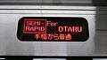 Five new six-car sets, classified "733-3000 series", were delivered in 2014 and phased in on Airport rapid services between Sapporo and New Chitose Airport from July, operating alongside the existing 721 series EMUs, and allowing the withdrawal of the remaining 711 series EMUs still in service.[6] These sets include a "u Seat" car with unidirectional reclining seating for reserved seat passengers.[6] The new sets feature LED lighting in the passenger areas.[6]