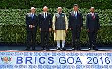 The 2016 BRICS summit was the eighth annual BRICS summit, an international relations conference attended by the heads of country or heads of government of the five member countries Brazil, Russia, India, China and South Africa. The summit was held from 15 to 16 October 2016 at the Taj Exotica hotel in Benaulim, Goa, India.[2] India holds the chair of the BRICS from February 2016 to December 2016.[3][4][5]