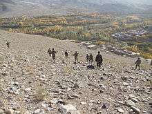 Charlie Company served under several successive Task Forces from 2011 to 2012: TF Warrior, TF Thunder, TF Gunner, and TF Black Scarves. Charlie operated out of COP Sayed Abad (Sayed Abad District, Wardak Province), COP Dashe Towpe[13] (Chak District, Wardak Province), and COP Band E Sardeh (Andar District, Ghazni Province) with the mission to fight as Infantry. In Wardak, Charlie Company augmented an Afghan Army Kandak and TF Warrior in a clear-hold-build operation to secure the Chak District Center. After helping to establish security and an enduring Afghan and ISAF presence in the District Center, Charlie continued partnered counterinsurgency operations alongside their Afghan Army partners throughout eastern Chak. In December 2011, Charlie moved to COP Band E Sardeh in Andar District, Ghazni to replace Alpha Company, 2nd Battalion, 2nd Infantry Regiment, 1st Infantry Division. Co-located with an Afghan Army Kandak, Charlie conducted partnered counterinsurgency operations in Andar, Dih Yak, and Giro Districts. Charlie's counterinsurgency efforts, empowering local leaders, and strengthening the local Afghan Army were likely instrumental in the "Andar Uprising" against the Taliban in the summer of 2012, beginning just as Charlie was redeploying.[14][15]