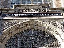The A. Philip Randolph Campus High School is a public secondary school in New York City. It is located in Harlem, adjacent to the City College of New York. It occupies a landmark building formerly occupied by The High School of Music & Art. The school was established in 1979 as an educational collaboration between the Board of Education and The City College of New York. The high school is open to all New York City residents, and more than 90% of its graduates attend college. Its daily attendance rate is 90 percent or better throughout the year. The students may take eleven advanced placement (AP) courses in five subject areas as well as college courses at Randolph, The City College, and Borough of Manhattan Community College. In doing so, many students earn college credits while attending high school.[1]