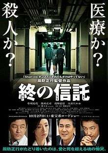A Terminal Trust (終の信託 Tsui no Shintaku) is a 2012 Japanese drama film directed by Masayuki Suo and starring Tamiyo Kusakari, Koji Yakusho, Takao Osawa and Tadanobu Asano. It is Suo's first fiction film since I Just Didn't Do It (2007).