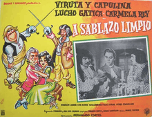 A sablazo limpio (English: A Quick Saber Slash) is a 1958 Mexican historical-comedy film directed by Fernando Cortés and starring Marco Antonio Campos and Gaspar Henaine as the double act Viruta y Capulina, and Lucho Gatica with Carmela Rey. Set during the era of the Spanish viceroyalties, the film follows the adventures of two clumsy blacksmiths who become the servants of a masked-hero in disguise who is willing to uncover the uncontrolled spending and injustices of a governor and his military captain.