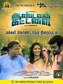 Aandavan Kattalai (English: God's order) is a 2016 Indian Tamil language satirical film co written and directed by Kaaka Muttai fame M. Manikandan (director credit as Manikandan Chandra Mathiazhagan) co written with Arul Chezhiyan and Anucharan. The film features Vijay Sethupathi and Ritika Singh in the lead roles. Produced by G. N. Anbu Chezhiyan and featuring music by K, the film began production in March 2016. It was released on 23 September, performing well at the collection centres in Tamil Nadu and has become a hit at the box office.[1]