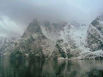 Steep rock walls dominate the landscape near Aappilattoq. |